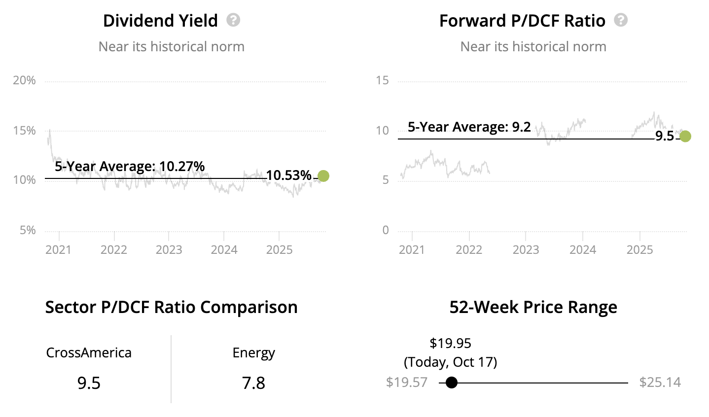 While the wholesale fuel distribution business has little volume protection, demand for gasoline is usually stable. And if volumes decline due to an economic slowdown, CrossAmerica's margins can rise since part of the business has variable fuel margins which increase when the price of oil falls faster than retail fuel prices adjust.