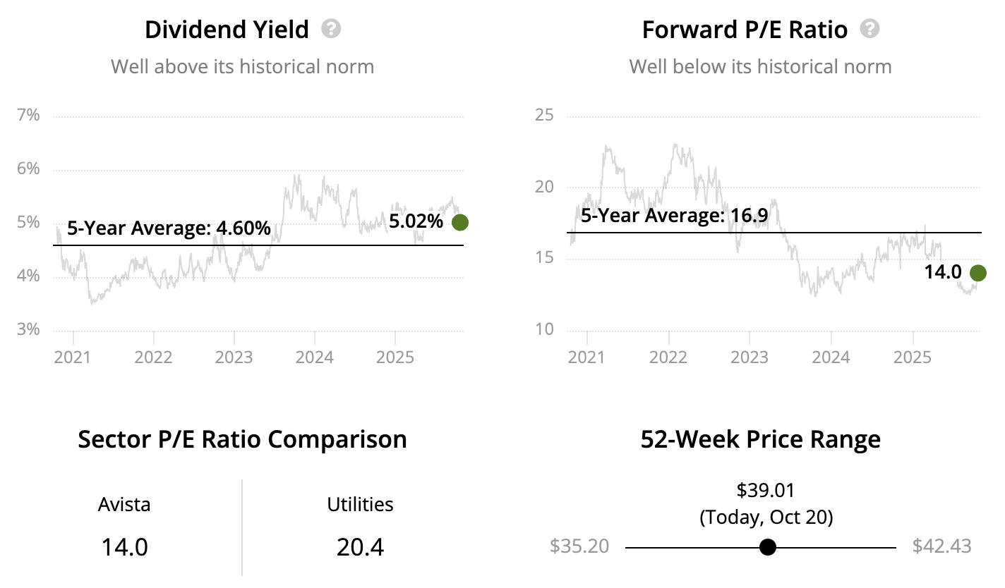 Despite these strengths, Avista trades at a discount to the broader utilities sector. This likely reflects its smaller size, slower growth rate, and investor concerns over wildfire risk, although these concerns may be overstated.