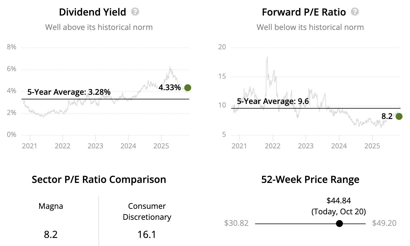 Magna's shares slumped under pressure from inflation and higher interest rates, which dampened demand for new vehicles. A slowdown in electric vehicle (EV) adoption has also reduced the near-term returns Magna can earn on its investments in developing new EV components, such as powertrain electrification and advanced driver-assistance systems. Increased competition from Chinese suppliers has also weighed on performance.