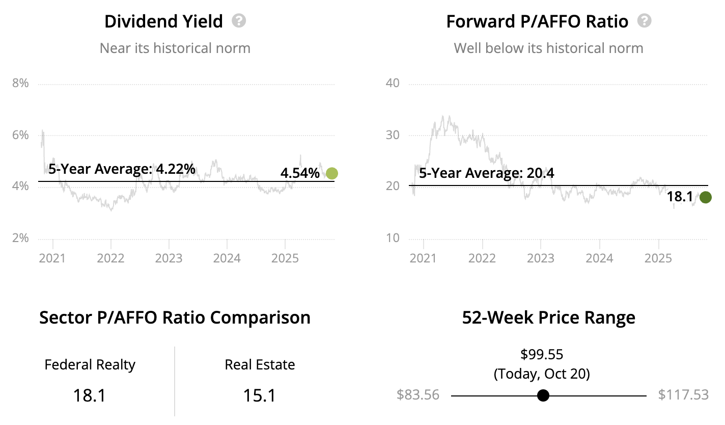 Federal Realty (FRT) owns more than 100 open‑air shopping centers and mixed‑use campuses clustered in affluent, land‑constrained coastal markets such as Silicon Valley, Washington DC, Boston, and New York.