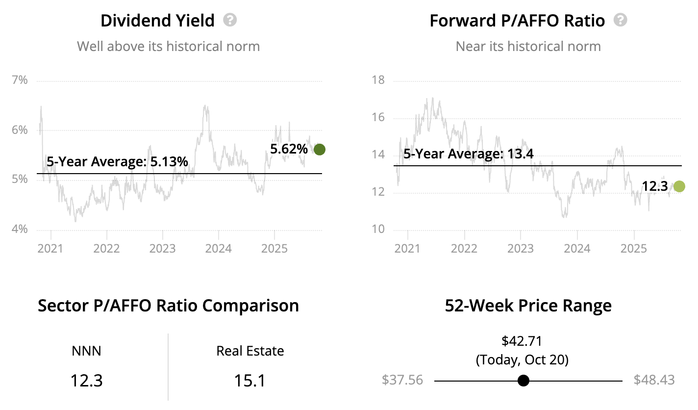 The retail REIT has delivered predictable results for decades, thanks in part to its triple-net leases that require tenants to pay for insurance, maintenance, utilities, and property taxes. NNN thus serves purely as a landlord, collecting a recurring stream of high-margin rent.