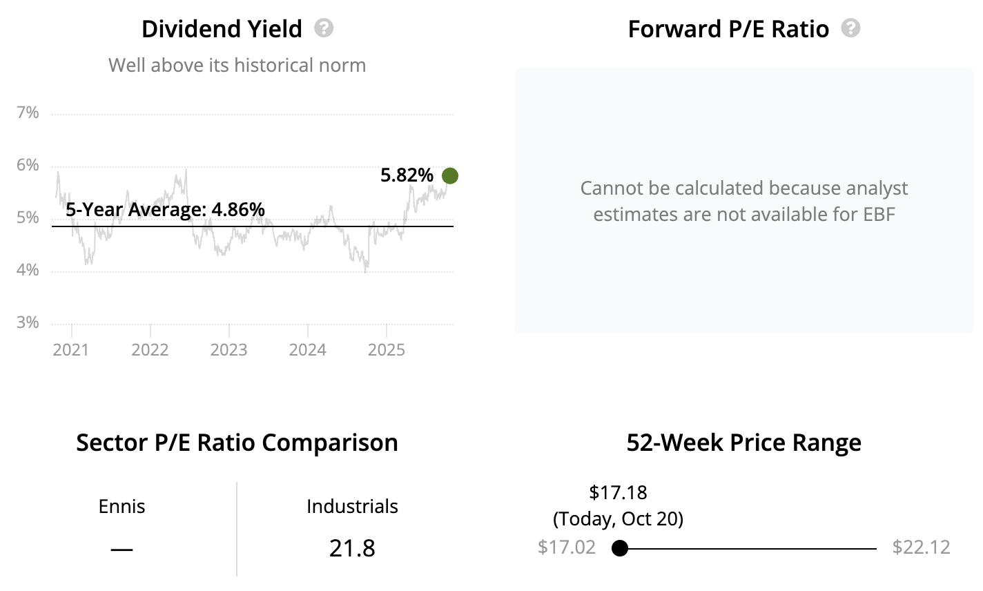Ennis may not have an attractive growth profile, but the firm has paid reliable dividends every year since 1973. The high-yielding stock may appeal to income investors who are comfortable owning a relatively small company that has historically delivered safe payouts with little excitement.