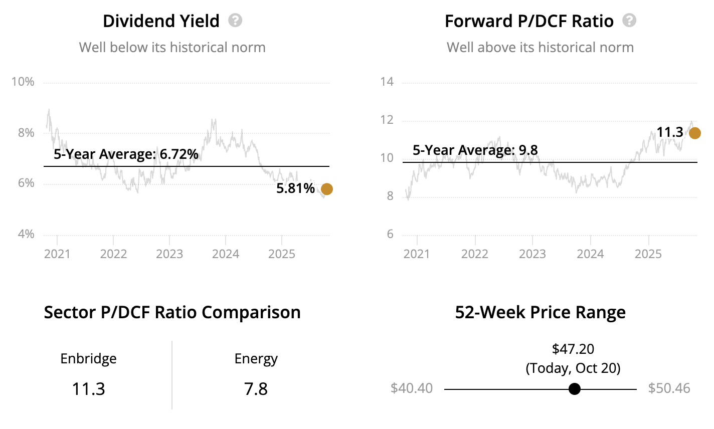 This annuity-like business model results in a steady cash flow stream that has helped Enbridge pay stable or higher dividends every year since 1953.