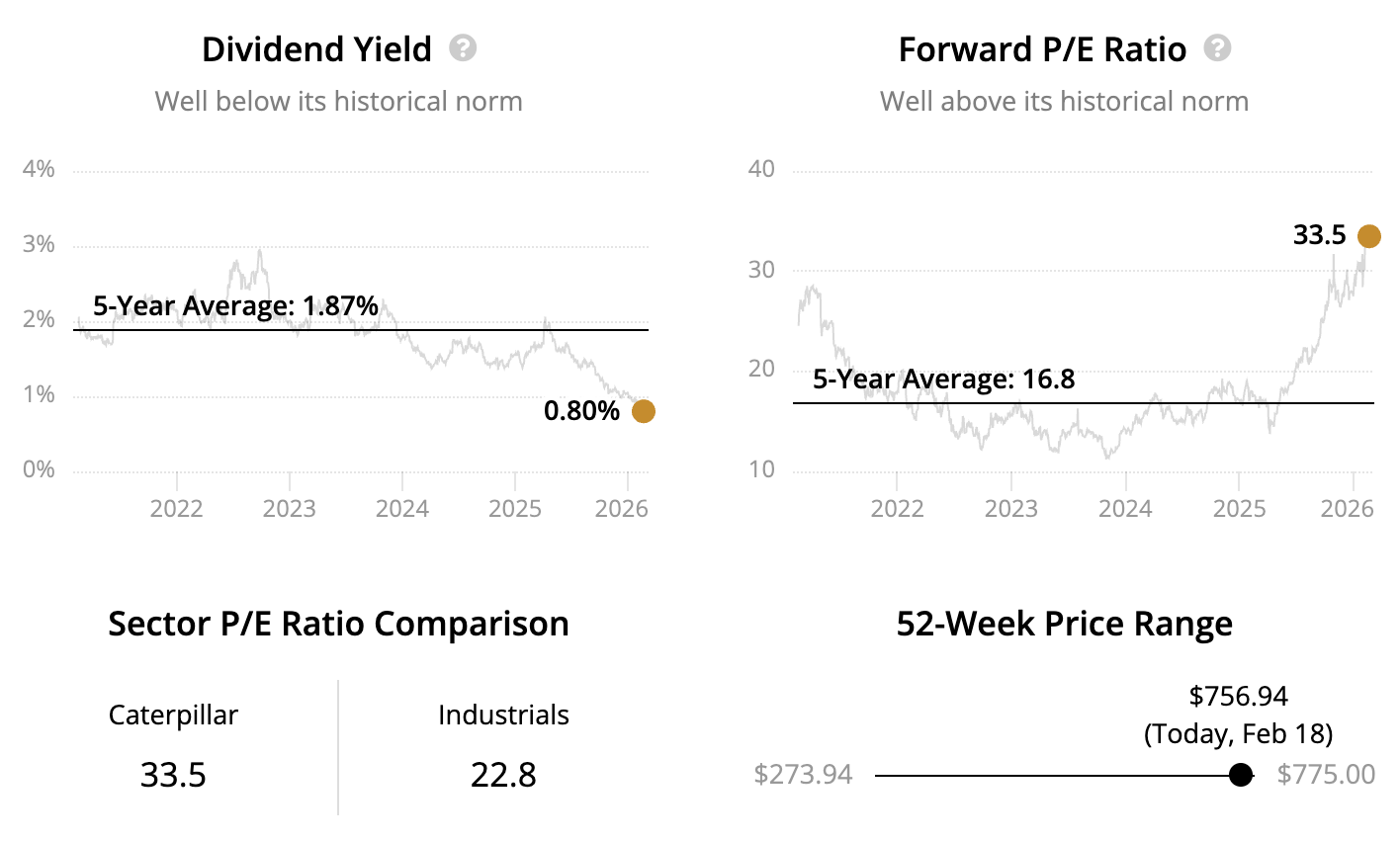 Caterpillar, founded in 1925, manufactures heavy equipment used in construction, mining, energy, and transportation, and it supports sales through a global dealer network. It also provides engines, turbines, and related services, plus financing through its captive finance arm.