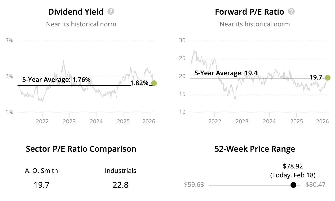 A. O. Smith, established in 1874, makes water heaters, boilers, and related water treatment products for residential and commercial markets. It sells primarily through wholesale distribution and retail channels, with meaningful operations in North America and other international markets.