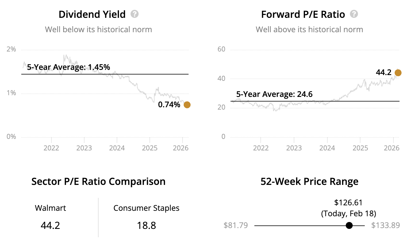 With roots tracing back to 1945, Walmart is the world's largest retailer, anchored by groceries and everyday essentials sold through supercenters, neighborhood stores, and e-commerce. It also operates Sam's Club and has expanded higher-margin businesses such as advertising, delivery, and membership services.
