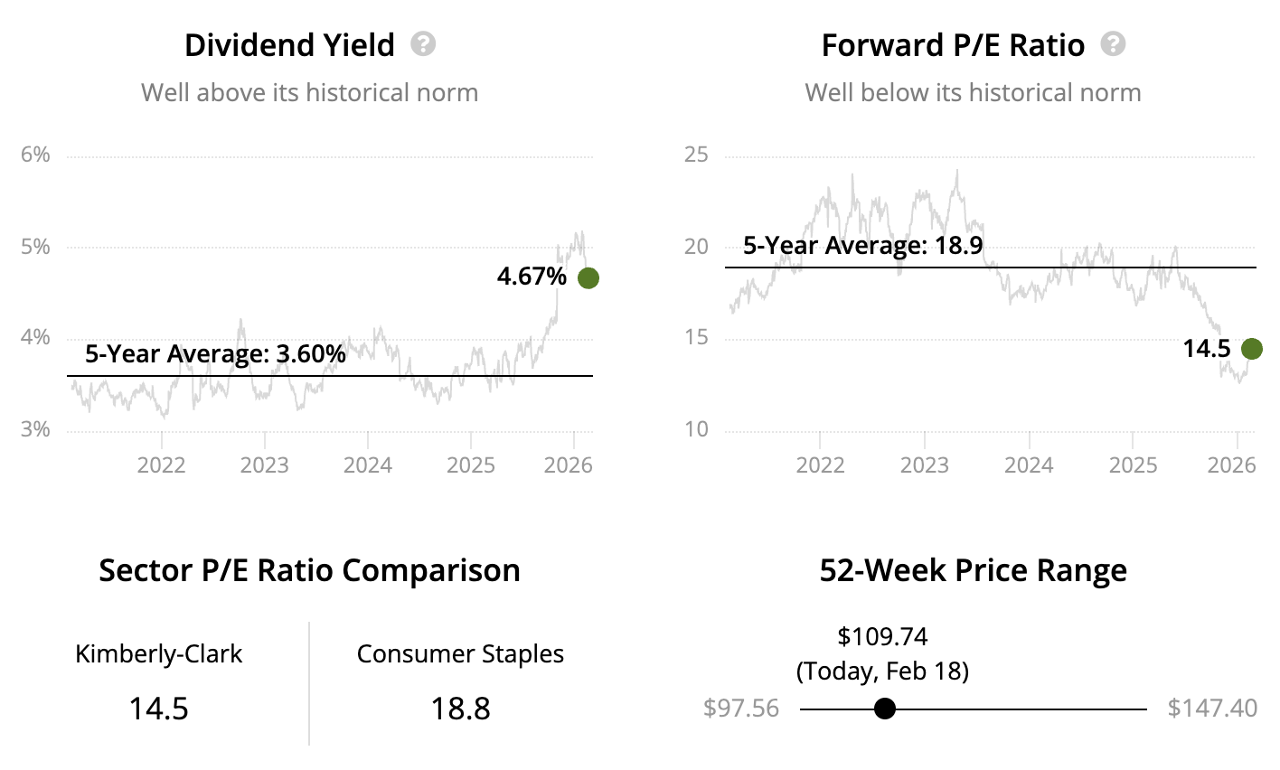 Kimberly-Clark, founded in 1872 as a paper mill in Wisconsin, sells tissue and personal care products such as diapers, wipes, toilet paper, and paper towels under brands like Huggies, Kleenex, and Cottonelle. Demand is relatively steady because many products are everyday necessities, though results depend on pricing and input costs.