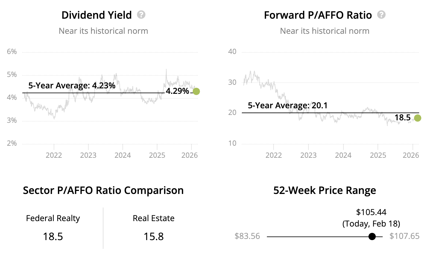 Founded in 1962, Federal Realty is one of the oldest REITs in the world. The company owns over 100 shopping centers and mixed-use properties located primarily in coastal markets such as Silicon Valley, New York, and Washington, D.C. Most of the firm's centers have a grocery component that drives consistent foot traffic for Federal Realty's retail tenants, which include drugstores, restaurants, apparel retailers, gyms, banks, and home furnishings stores. The firm also owns some apartments and offices.