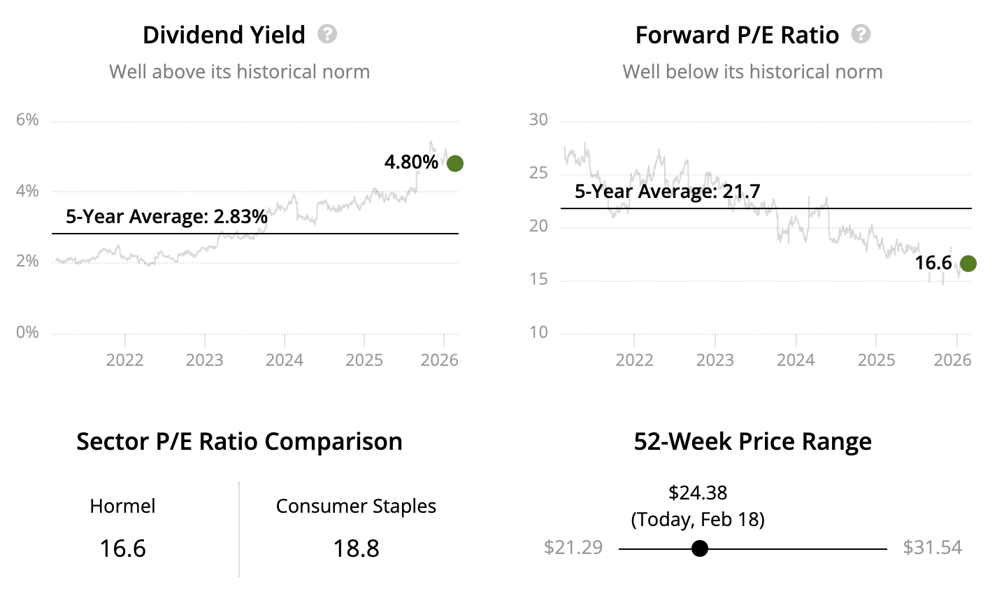 Hormel Foods was founded in 1891 and is a branded food company focused on packaged meats, refrigerated foods, and convenient meal solutions. Its portfolio includes well-known brands such as Spam, Applegate, Jennie-O, and Skippy, with distribution across retail and foodservice.