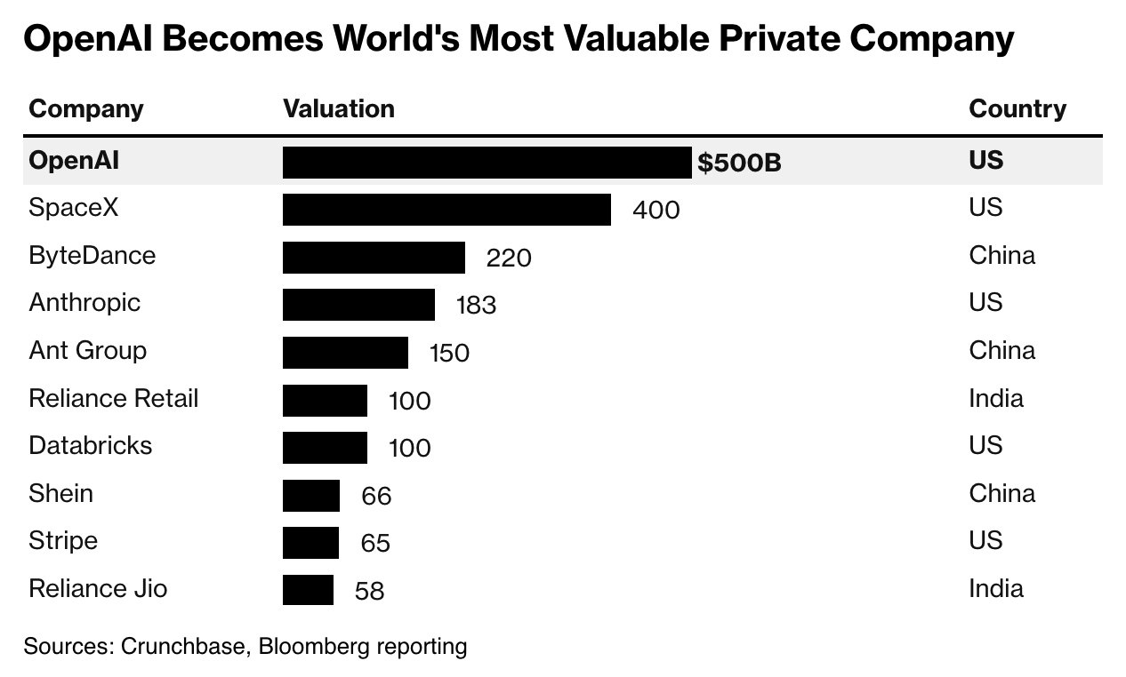 Investors are happy to drink the Kool-Aid for now. Earlier this week, OpenAI sold shares at a $500 billion valuation, more than 50 times sales. And in July, an AI startup founded just months earlier raised money at a $12 billion valuation despite having no revenue or products.