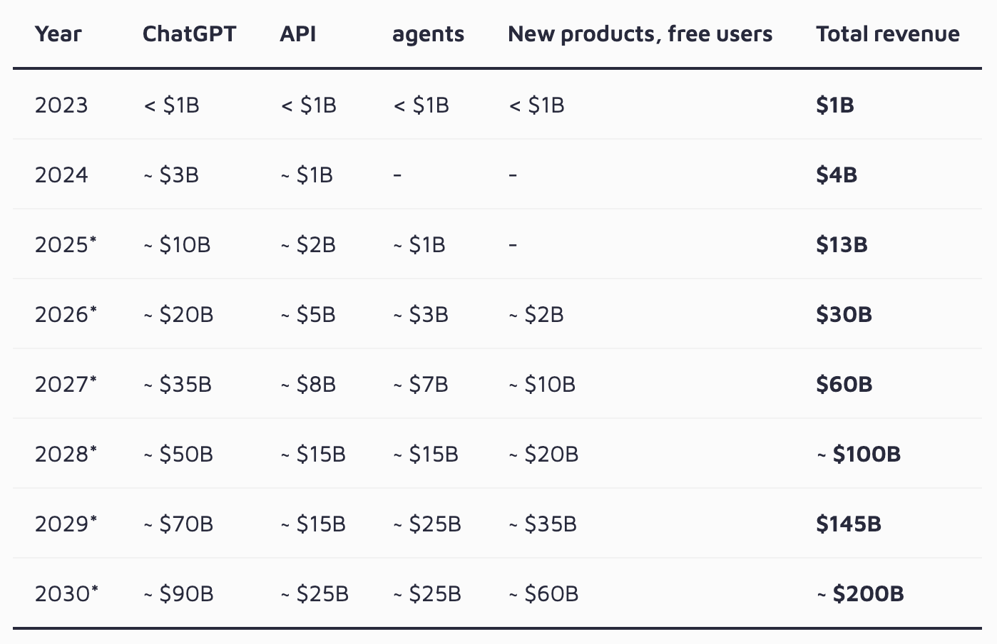 While spending on data centers is accelerating, AI services have yet to go mainstream. If all goes well, OpenAI forecasts its revenue will soar to $200 billion by 2030, driven by paid ChatGPT plans, ads shown to free users, businesses embedding the technology into everything from apps to robots, and new consumer products that expand its reach.
