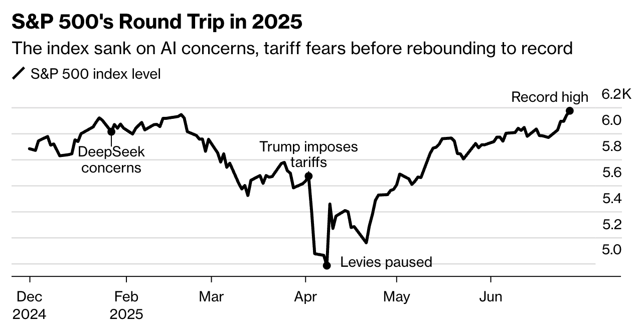 Trade deal optimism, fairly benign inflation readings, and steady economic data helped fuel the market's comeback. The government's unusually large deficit (rare outside of recessions or wartime) likely added support as well. Once again, tech and AI stocks led the way.