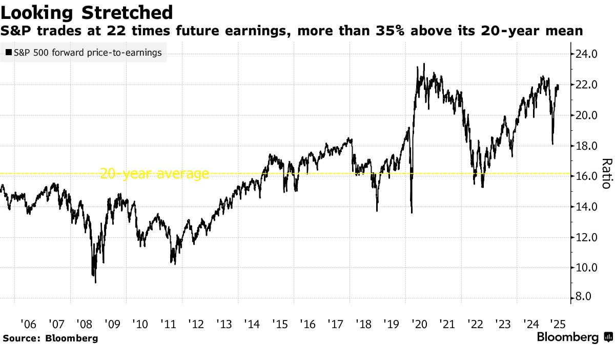 That said, the S&P 500's relief rally now has the market trading at 22 times expected profits in the next 12 months, 35% above its 20-year average multiple.