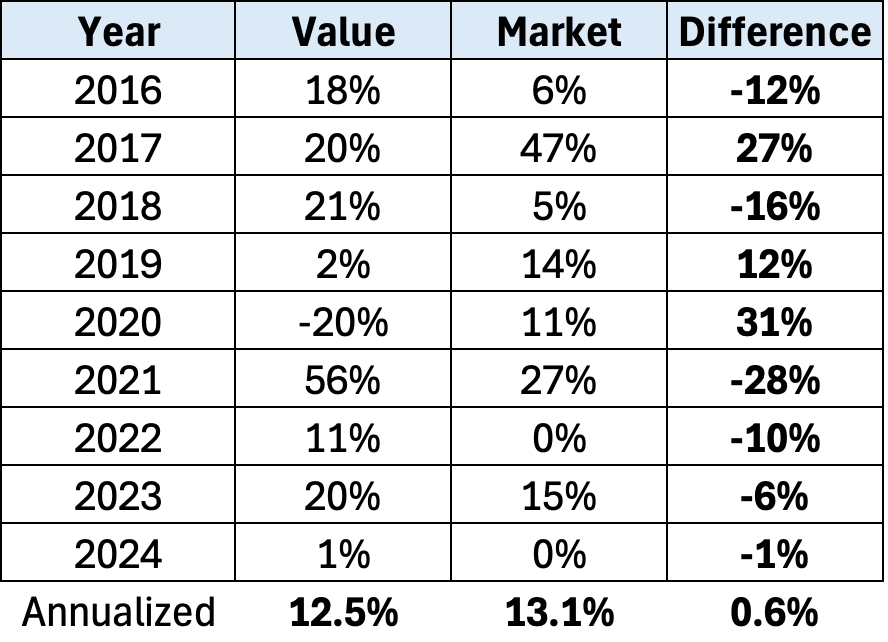 That connection becomes clear with time. Our three model portfolios turned 10 years old this summer, with an average holding period of nearly eight years. I feel entitled to call myself a patient person based on that track record — and my wife doesn't read this newsletter often enough to argue otherwise.
